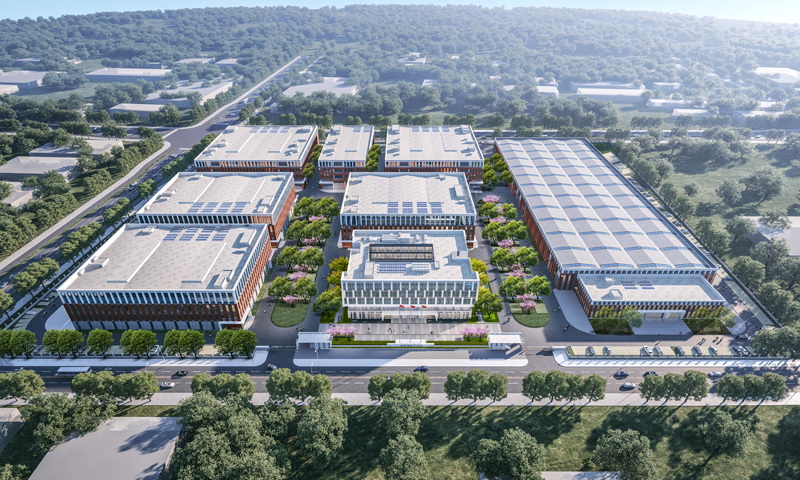 智慧信息產業園占地151畝,設有廠房7棟,辦公樓1棟,總建筑面積約13.3萬平方米,將于2024年年底正式交付使用。
