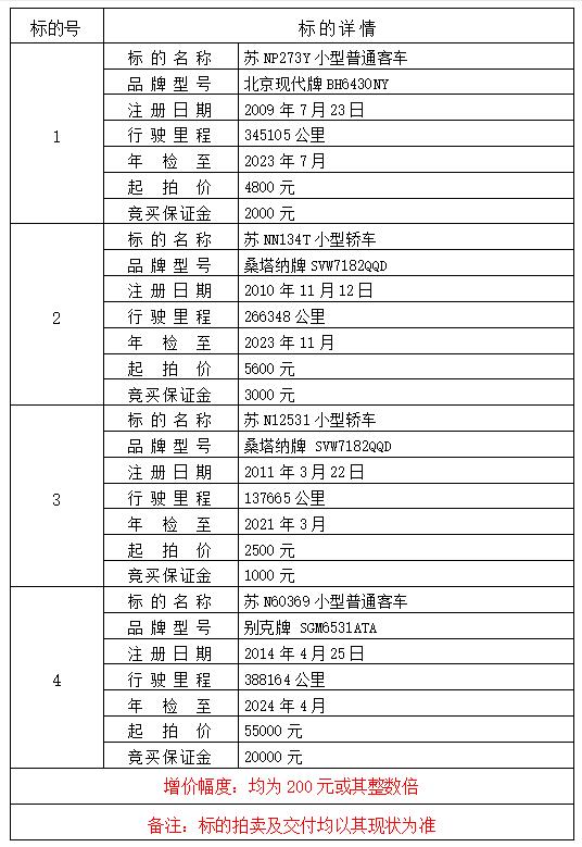 1.本次拍賣標的不含原車牌照。標的拍賣及交付時均以標的實物現狀為準,競買人應在標的物展示時間內主動向委托方咨詢標的相關情況,現場踏勘、了解標的現狀,未進行標的勘察的競買人后果自負。