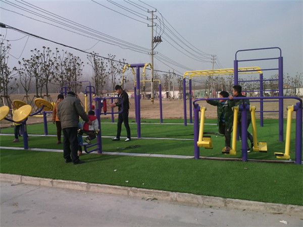 這批健身器材既有適合青少年健身的單雙杠、臂力訓練器,又有適合中老年鍛煉的腰部按摩器、太極推揉器等,滿足了周邊不同年齡層居民的健身需求,整個建設區域置于一片綠地上,并鋪設了人工草坪,與周圍環境相得益彰。