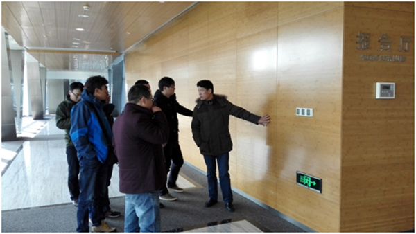 劉建華向考察人員詳細介紹了綠化工程、幕墻工程、木飾面裝修及吊頂工程等施工要點,并結合公司部分代建項目,系統分析,指出不足。他表示,建筑技術發展日新月異,工程從業人員必須不斷加強學習、總結經驗,才能不斷提高工程管理水平。