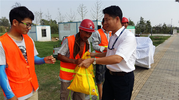 7月28日下午,開發公司副總裁劉建華帶領公司相關部門負責人來到公司代建項目工地,現場慰問了奮戰在高溫一線的企業員工和建筑工人,并親自給他們遞上了毛巾、肥皂、清涼油等防暑降溫物品。