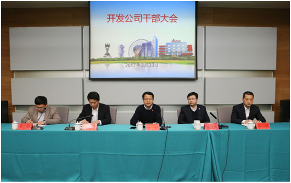2月23日下午,開發公司在園區管委會一樓會議室召開干部大會,宣布公司管理層領導任職調整決定。園區黨工委委員、管委會副主任、財政局局長高揚主持會議并講話。公司副總裁、建發公司執行董事劉建華宣讀干部任職文件,離任、新任干部分別作離別感言和表態發言。
