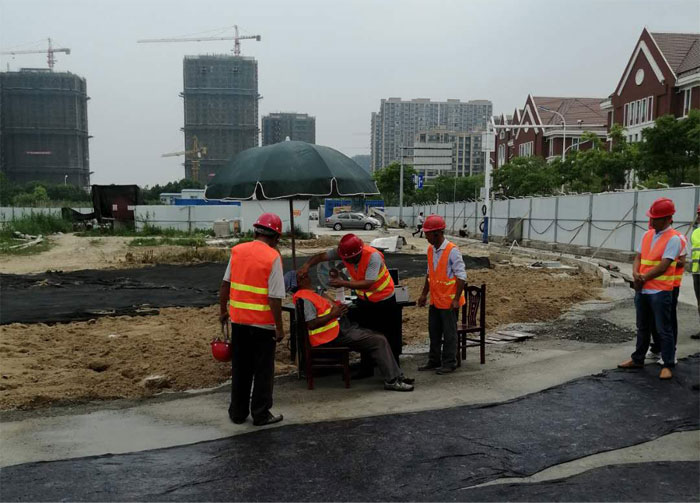 近日,結合夏季高溫天氣狀況,開發公司在園區淀山湖路施工現場組織高溫中暑應急演練。