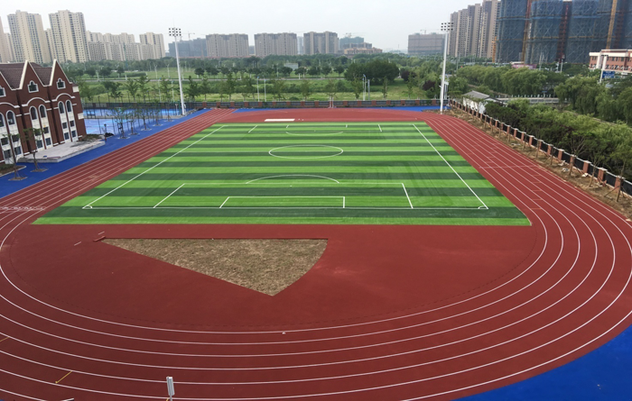 本次體育場地工程主要包括300米塑膠跑道、1個燈光足球場、3片籃球場和3片排球場。 2018年11月,塑膠跑道國家強制性標準《中小學合成材料面層運動場地》GB 36246-2018正式實施,本體育場地項目從前期的規劃設計,到制定參數,到施工過程中的選材用料和現場施工工藝的把控,嚴格按新國標實施,同時在校方見證下按要求對固體顆粒、膠水、PU等材料現場取樣并送至上海專業檢測機構進行復測,各項專業檢測報告均合格。在施工過程中狠抓質量、盡職盡責,確保環保、安全、精品,目前項目基本完工,取得了較好的觀感效果,同時也將為學校體育教學和體育活動提供了良好的場地條件。