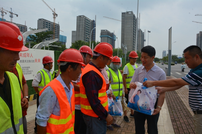 7月26日上午,開發公司副總裁劉建華帶隊慰問市政工程項目現場工人,給他們送去毛巾、香皂、洗發水等防暑降溫用品,感謝他們對園區市政工程的建設作出的貢獻。