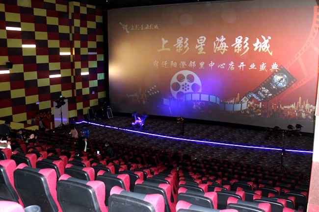 上影星海影城(宿遷陽澄鄰里中心店)位于蘇宿工業園區陽澄鄰里中心三樓,規劃面積約5600㎡,共建設6個高標準的電影放映廳,其中包括巨幕廳、VIP廳等各類型特色放映廳,擁有1163個座位。影城總投資約1500萬元。
