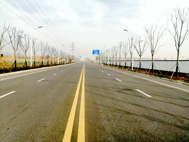 2019年工業區市政道路景觀綠化工程主要分為兩個標段實施,實施范圍為古城路(莫干山大道—天柱山路)北側15米綠化帶,天柱山路(古城路—清水河)兩側人行道綠化帶和莫干山大道(青海湖西路—古城路)兩側綠化帶及人行道,總綠化面積約35000平方米,工程總投資約868萬元,主要種植為櫸樹、雪松、銀杏、欒樹、女貞、日本晚櫻、紅梅、垂絲海棠等喬灌木及紅葉石楠、金森女貞、夾竹桃、海桐等常綠灌木和金邊麥冬及草坪等地被類植物。