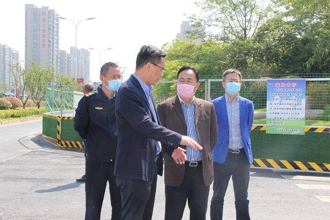 4月29日上午,園區黨工委委員、管委會副主任、規劃建設局局長邢全男帶隊檢查園區青海湖西路人行道提升改造工程。