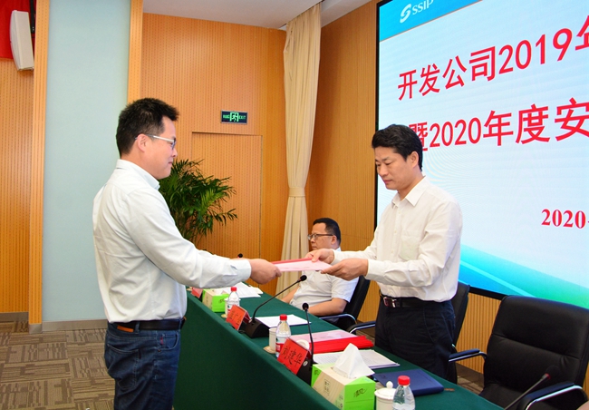 李響副總裁宣讀了2019年度優秀團隊、“JSSD講壇”參與積極分子表彰文件,公司管理層為獲獎團隊、“JSSD講壇”參與積極分子頒發了榮譽證書,各部門、建發公司、蘇宿鄰里公司向劉總遞交了2020年度安全生產目標管理責任書,會議由黃健財務總監主持。