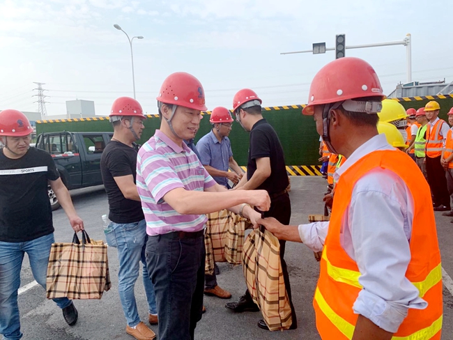 8月21日下午,開發公司副總裁劉建華帶隊慰問市政工程項目現場工人,給他們送去毛巾、香皂、洗發水等防暑降溫用品,感謝他們對園區市政工程的建設作出的貢獻。