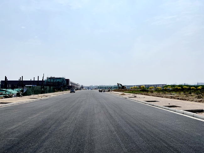 自工程開工以來,各參建單位克服征地拆遷、靜穩天氣管控和交叉施工等不利因素,緊鑼密鼓地做好各項工作。開發公司要求施工單位合理組織,調配資源,明確瀝青面層攤鋪的時間節點,在施工人員的不懈努力下,提前完成了該路面的瀝青攤鋪任務,為項目通車奠定了堅實的基礎。該項目的建成將打通園區最北側的斷頭路,對完善園區路網和服務周邊企業出行有著重要意義。
