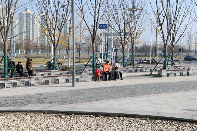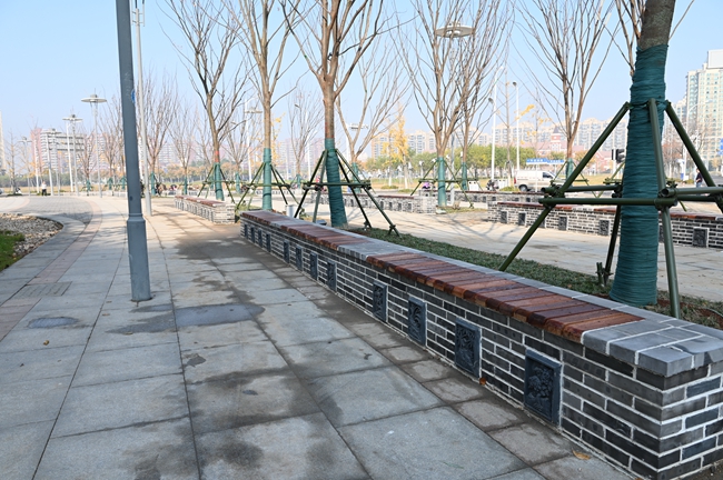 此次針對蘇州公園東北角處進行重新栽植18株20CM的彩葉樹種的櫸樹和日本矮麥冬進行栽植,同時為迎合蘇州街西入口整體景觀效果相協調,增加更具“蘇式”韻味景觀長條形式的坐凳滿足周圍居民生活休閑。