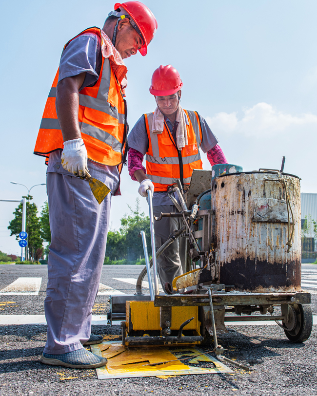 入夏以來,高溫酷暑天氣“烤”驗著廣大一線工人,近日市氣象局更是發(fā)出了高溫預警。由城發(fā)公司全過程建設(shè)服務(wù)管理的工業(yè)區(qū)標志標線提升工程近期有序開展舊標線銑刨與施劃工作。