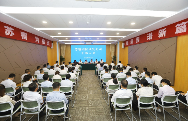 9月16日上午,城發公司在蘇宿工業園區管委會一樓會議室召開干部大會,宣布公司領導任職調整有關決定。蘇州工業園區國有資本投資運營控股有限公司董事長錢曉紅出席會議并講話,園區黨工委委員、管委會副主任張漢華宣讀任職文件,離任、新任領導分別作離別感言和表態發言,園區黨工委委員、管委會副主任、黨工委管委會辦公室主任崔廣全主持會議。