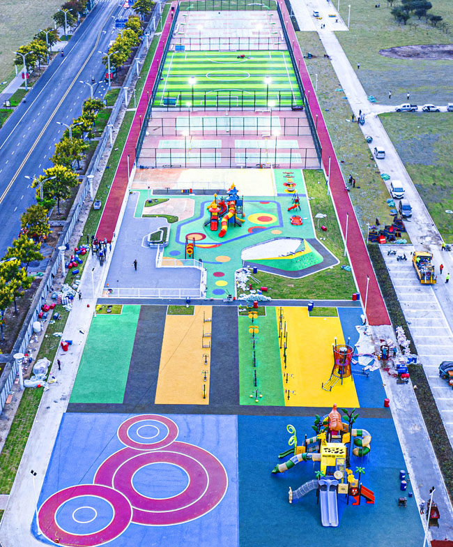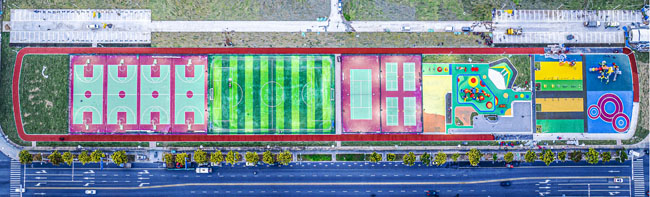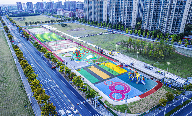 該項目所處位置原為一處待開發地塊,園區根據居民需求規劃建設健身跑道、全齡段健身區、綜合兒童活動區、平地輪滑場、廣場舞片區和各類球場(其中羽毛球四組、網球場一組,7人制籠式足球場一組、籠式籃球場四組),同步建設公廁、停車場等配套設施。