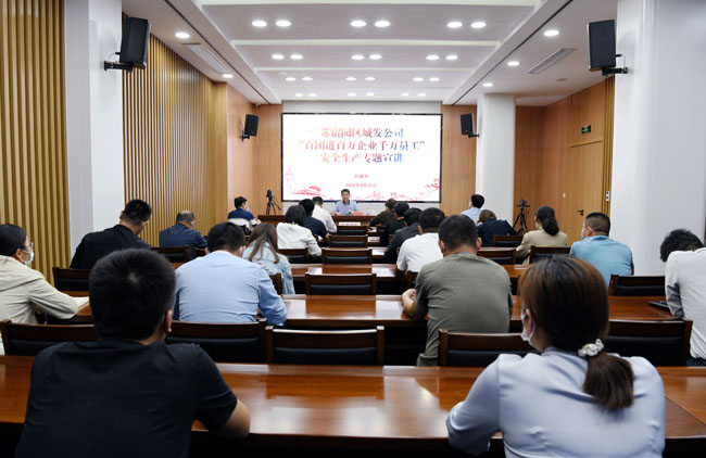 為深入習近平總書記關于安全生產的重要論述和指示批示精神、安全生產“十五條”硬措施、新《安全生產法》以及安全生產大檢查、重點行業領域安全生產百日攻堅行動,認真落實全省“百團進百萬企業千萬員工”安全生產宣講活動的安排部署。9月23日下午,宿遷市蘇宿工業園區城市發展投資有限公司董事長劉建華作安全生產專題宣講。