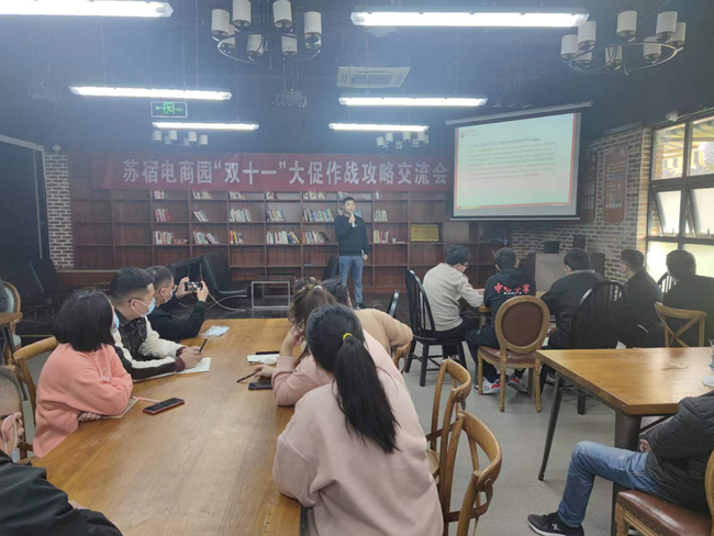 2022年"雙十一"已進入倒計時,蘇宿電商園品牌商家紛紛摩拳擦掌,迎接這一全年最大爆發場。正值“雙十一”蓄水期,蘇宿電子商務產業園提前組織各商家進行大促作戰攻略交流會。
