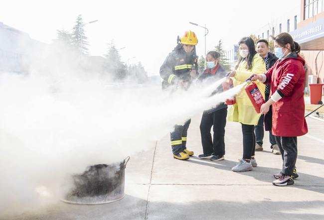 接著,園區消防應急救援大隊對工業坊項目人員及企業100余名員工進行了火災逃生注意事項、消防器材使用方法、火災報警流程及初期滅火實操等消防安全培訓。