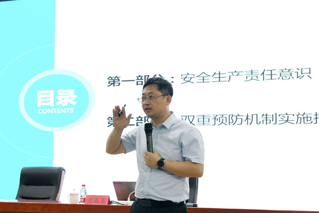 本次培訓邀請國家注冊安全工程師祝成軍進行授課。培訓會上,祝成軍圍繞開展安全生產雙重預防體系建設工作的意義,相關法律法規、標準等內容進行了詳細講解,并結合具體事故案例,對如何理解雙重預防體系、如何劃分作業單元、如何進行風險辨識與評價等內容進行了專門的講解。