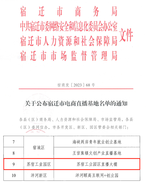 近日,由宿遷市商務局組織,各縣區參與的首批“宿遷市電商直播基地”評選結果揭曉,蘇宿電商園直播大棚成功入選首批“宿遷市電商直播基地”。
