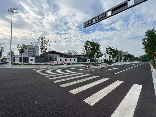 本次工程累計安裝隔離護欄1236米,警示柱12套,震蕩標線713平米,夜間自發光三角警示牌19套,停車場指示牌2套,可拆卸防撞柱10套,臨時封閉移動護欄100m。