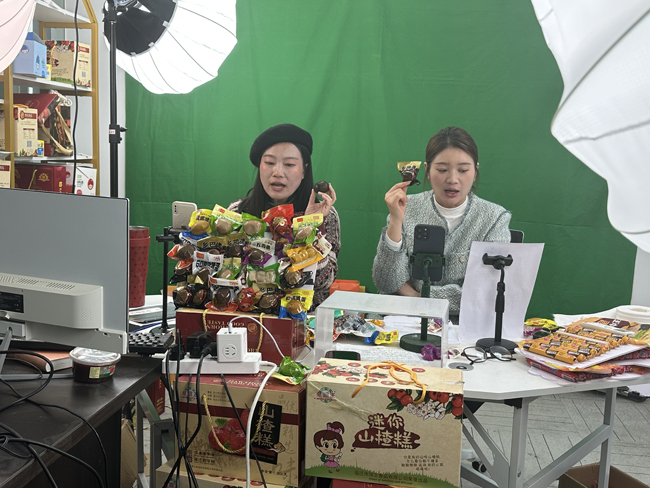 當天,電商產業園內的“直播大棚”人氣爆棚。主播們在鏡頭前與消費者展開互動,充滿激情地介紹各類商品,通過生動的語言和直觀的展示,將商品的特點和優勢傳達給觀眾,引導他們進行購買,主播們還以抽獎、送禮等方式增加直播的趣味和互動,吸引更多觀眾的參與。