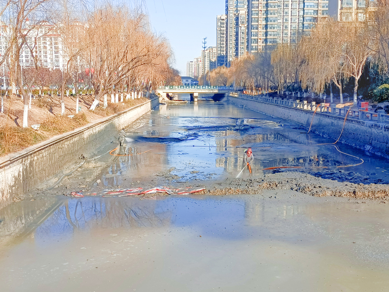 園區利民河全長1.1公里、寬20米,為區內景觀河。經前期摸排,河道內淤泥沉積較多,影響河道自凈能力。城發公司克服冬季氣溫低、斷面長、施工難等不利因素,采用泥漿泵配合高壓水槍射水,管道封閉運輸的施工方法,清理淤泥約8500立方米,高效完成河道清淤工作。