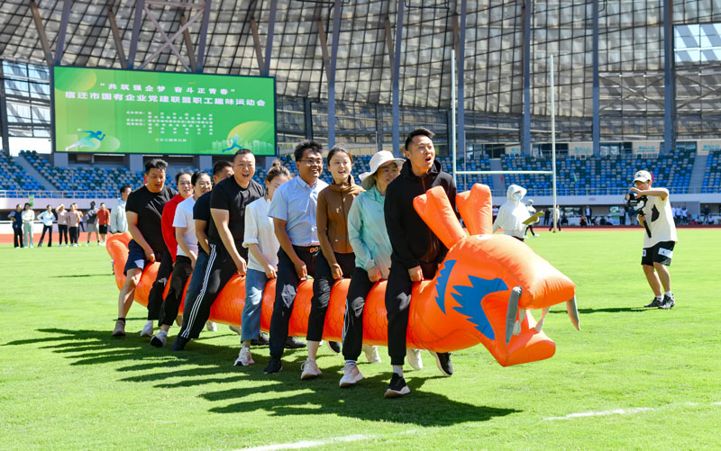 6月1日,宿遷市國有企業黨建聯盟“共筑強企夢 奮斗正青春”職工趣味運動會在宿遷奧體中心體育場成功舉辦。來自全市央企、省企和市縣(區)屬企業在內的26支代表隊約800名運動員參加比賽。