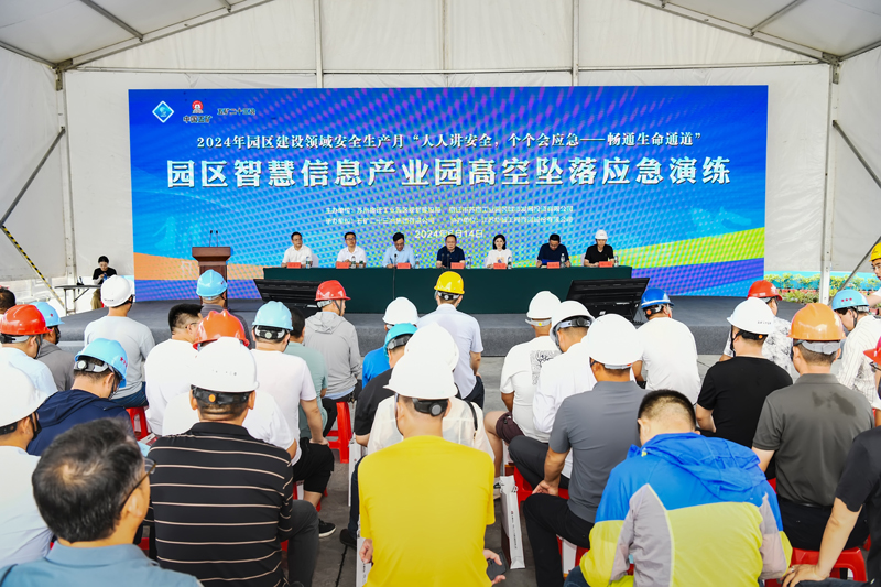 今年6月是第23個全國“安全生產月”,主題是“人人講安全、個個會應急——暢通生命通道”。 為貫徹落實《園區安委辦關于開展2024年園區“安全生產月”活動的通知》要求,6月14日,在規劃建設局組織下,城發公司會同園區智慧信息產業園各參建方,在項目現場舉行2024年園區建設領域安全生產月高空墜落應急演練活動。園區黨工委委員、管委會副主任、規劃建設局局長陳宏根,規劃建設局副局長劉美霞,城發公司總經理助理張驥,園區在建項目建設單位、施工總承包、監理等100余名人員共同參與。