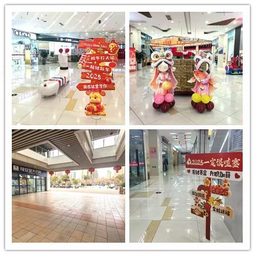 公司精心策劃,大門粘貼的精美窗花、高掛的大小燈籠、增設網紅背景墻、擺放拍照打卡立柱……鄰里中心裝飾一新,各種充滿年味的布置為即將到來的新春佳節增添了濃濃的喜慶氛圍。