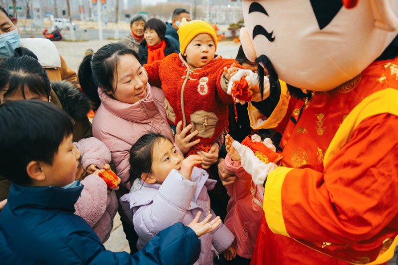 除了精彩絕倫的舞龍舞獅表演,活動現場還邀請了“財神爺”巡游。“財神爺”一路走街串巷,為街區里的商戶送去新春的美好祝福,祝愿他們新的一年生意紅火、財源廣進。同時,“財神爺”還向市民和游客發放福袋,大家紛紛上前領取,希望沾沾財氣,收獲滿滿的好運,現場一片歡樂祥和的景象。