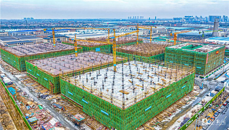 12月26日,蘇宿工業園區智慧信息產業園項目施工現場,建設人員正在有序施工。