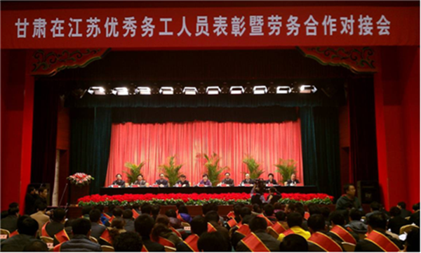 3月16日,甘肅在江蘇優秀務工人員表彰會暨勞務合作對接會在寧舉行,甘肅省14個城市當天分別與我省13個省轄市及昆山市簽訂了對口勞務協作聯系協議。會議特別指出,甘蘇兩省勞務合作日益密切,已探索出服務管理全程化的“蘇州模式”和培訓就業一體化的“宿遷模式”,呈現全面合作、互利共贏的良好局面。