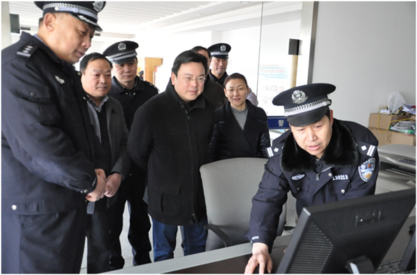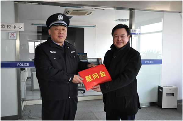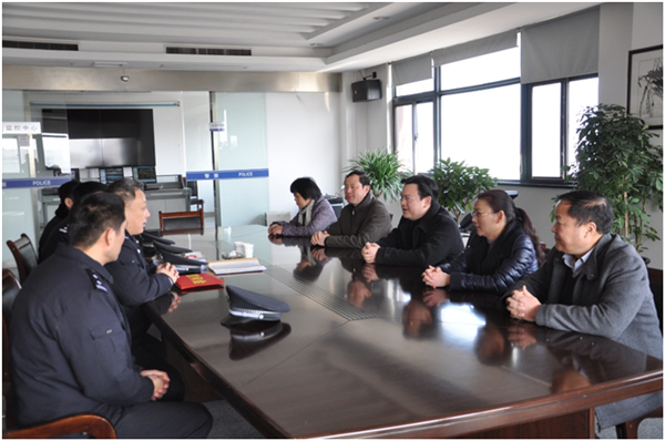 在園區公安分局,方文浜先后參觀了園區派出所、公安分局辦公區和園區治安監控中心,對園區公安分局的工作表示了肯定,對分局各位干警的辛勤奉獻表示感謝,并送上了慰問金。