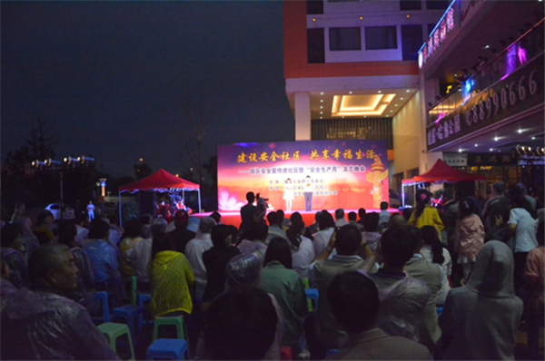 6月29日晚,園區安全宣傳進社區暨“安全生產月”文藝晚會在明日鄰里中心廣場舉辦。雖然天空飄著毛毛細雨,但絲毫不影響廣大居民、工友觀看晚會的熱情。