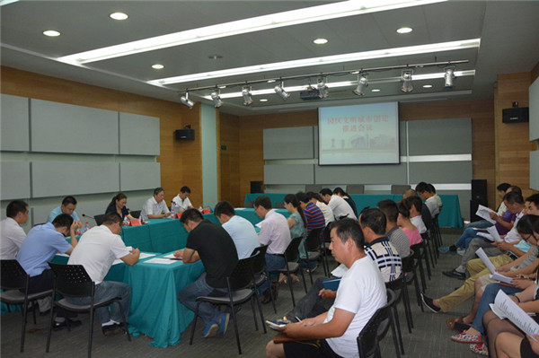 園區五城同創工作領導小組全體成員,園區社工委,部分工業企業、餐飲單位、建筑施工單位負責人參加會議。