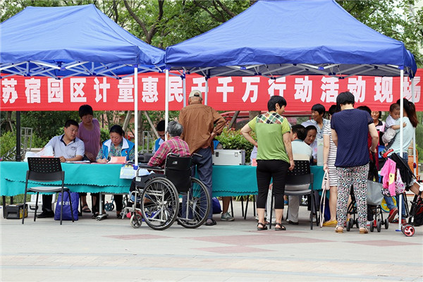 6月29日上午,園區市場監管局、社工委聯合市質監局在建屋?明日星城小區舉辦計量惠民“千千萬行動”進社區活動。