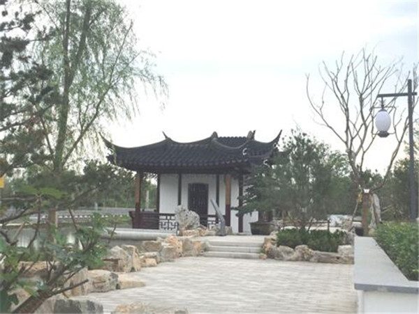 園區富民河北岸西段景觀綠化工程,位于富民河北岸(通湖大道至石公山路,石公山路至通達大道),總面積8024平方米,總投資約455萬元,整體風格為蘇式風格,借鑒蘇州園林元素,如滄浪亭、獅子林、拙政園和留園的園林特點,打造園區的“蘇式園林”。