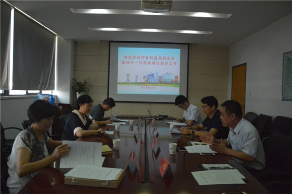 8月18日下午,市食品藥品監督管理局副局長張桂平一行到園區調研文明餐飲創建工作。園區黨工委委員、管委會副主任戈亮參加了座談。