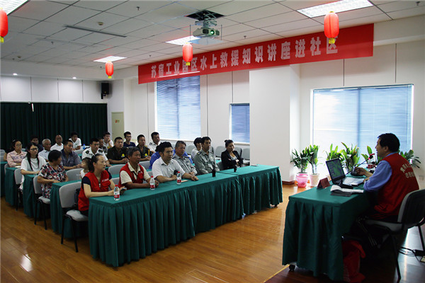 8月4日上午,我市黃河水上志愿救援隊的志愿者們走進蘇宿社區,為在場的職工、群眾做了一場真實、生動的水上救援知識講座。